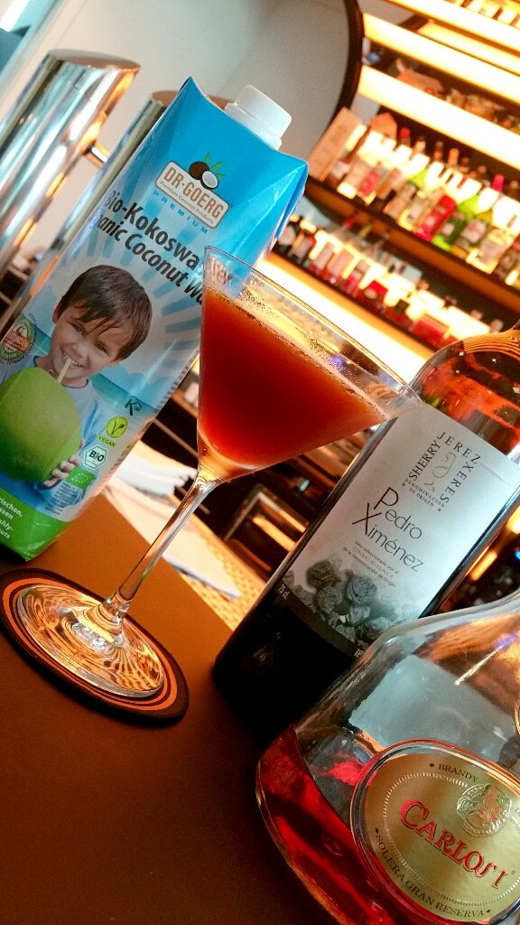 Ein schöner, klassischer Twist des Brandy Sour. Der darin enthaltene P.X. verträgt sich hervorragend mit den Aromen des Brandys.