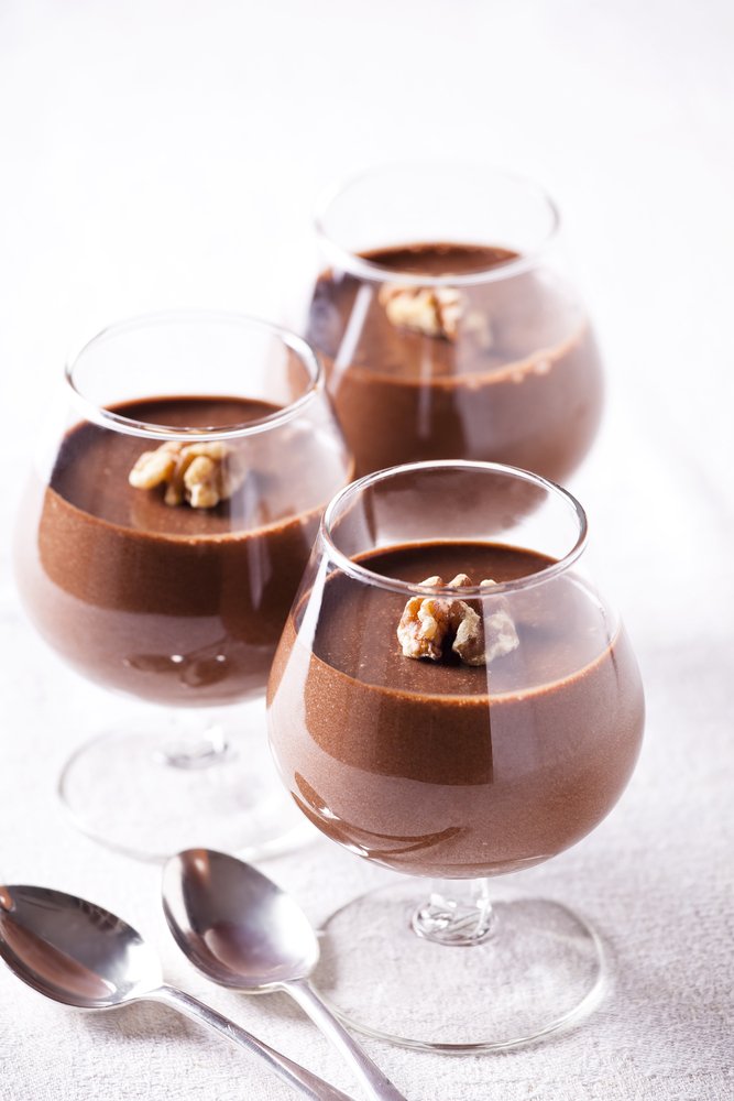 Butter und Schokolade im Wasserbad schmelzen. Gut durchrühren und den Puderzucker hineinschlagen. Eier trennen. Die Eidotter zur Schokoladenmasse hinzufügen und so lange rühren, bis eine homogene Masse entstanden ist. Das Eiweiß schlagen, bis ein stabiler Schaum entsteht. Vorsichtig unter die Schokomasse heben. Mindestens 6 Stunden kalt stellen.