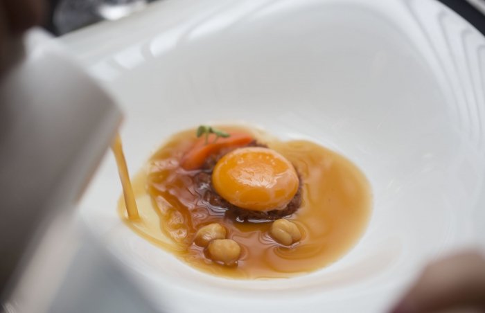 El menú se sirve a un precio cerrado de 59 euros (sin bebida), aunque dando una nueva vuelta de tuerca, el Corral de la Morería ofrece maridar los platos con una selección de espumosos, blancos y tintos, o con una sorprendente armonía realizada con grandes vinos de Jerez. Ambas opciones de maridaje tienen un incremento de 29 euros por persona. Por poner un ejemplo, quien se decante por los vinos del Sur disfrutará de la Ensalada de Vieiras junto a unamanzanilla Solear en Rama, las verduras se emparejan con fino Tío Pepe en Rama, la Lubina con un Equipo Navazos Fino bota 35, la Yema de Huevo de Corral con Equipo Navazos Amontillado bota 37, y el Meloso de Ternera conOloroso Tradición 30 años. Y para entrar por la puerta grande al disfrute del menú, el espectáculo gastronómico empieza con una interpretación del Foie Gras acompañado por uno de los mejores cavas que existen, Argent de Gramona.