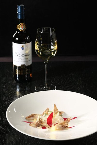 We recommend sherry wine for fish dishes such as sea bream ceviche with avocado and crispy black rice. We serve sweet sherry to desserts or separately.