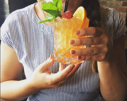 Combine cream sherry, sugar and orange slices in a cocktail shaker and gently muddle together. Add the remaining ingredients and a cup of crushed ice. Shake gently and pour all ingredients into a Collins glass. Garnish with a straw, mixed berries or seasonal fruit, and a shake of powdered sugar.