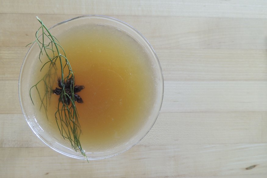 Cream sherry (originally the Morenita from Bodegas Emilio Hidalgo) is the only sweetener in this snappy autumn sour. Its natural richness balanced out the acidity of the Earl Grey-fennel shrub and lemon juice quite pleasantly, allowing its caramel and dried fruit to shine alongside the gin and Benedictine.