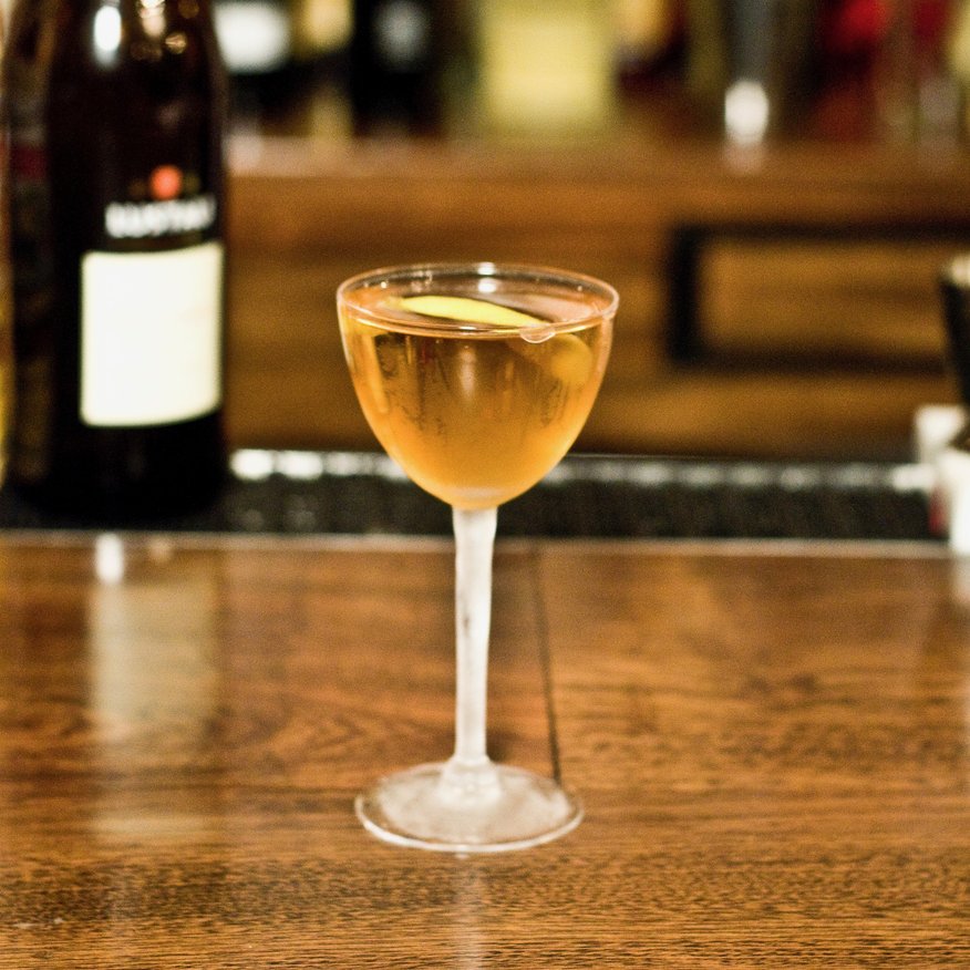 Combine all ingredients in a mixing glass. Stir over ice and strain into Nick and Nora glass. Garnish with a lemon twist.
