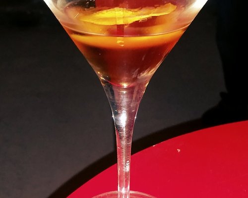 Stir over ice, and strain into a Nick and Nora glass. Garnish with oils from an orange disc and drop into the glass.