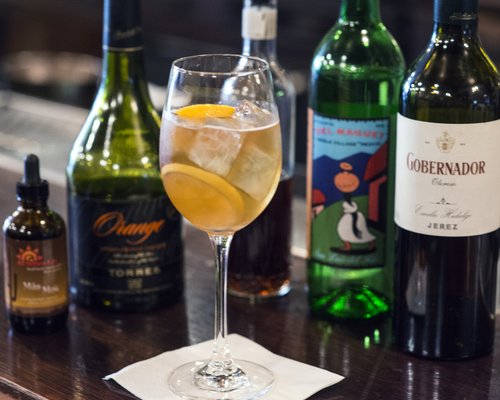 Sherry and banana meet a Mai Tai, where the innate nuttiness of sherry is enhanced by the orgeat to create a complex, tropical number.