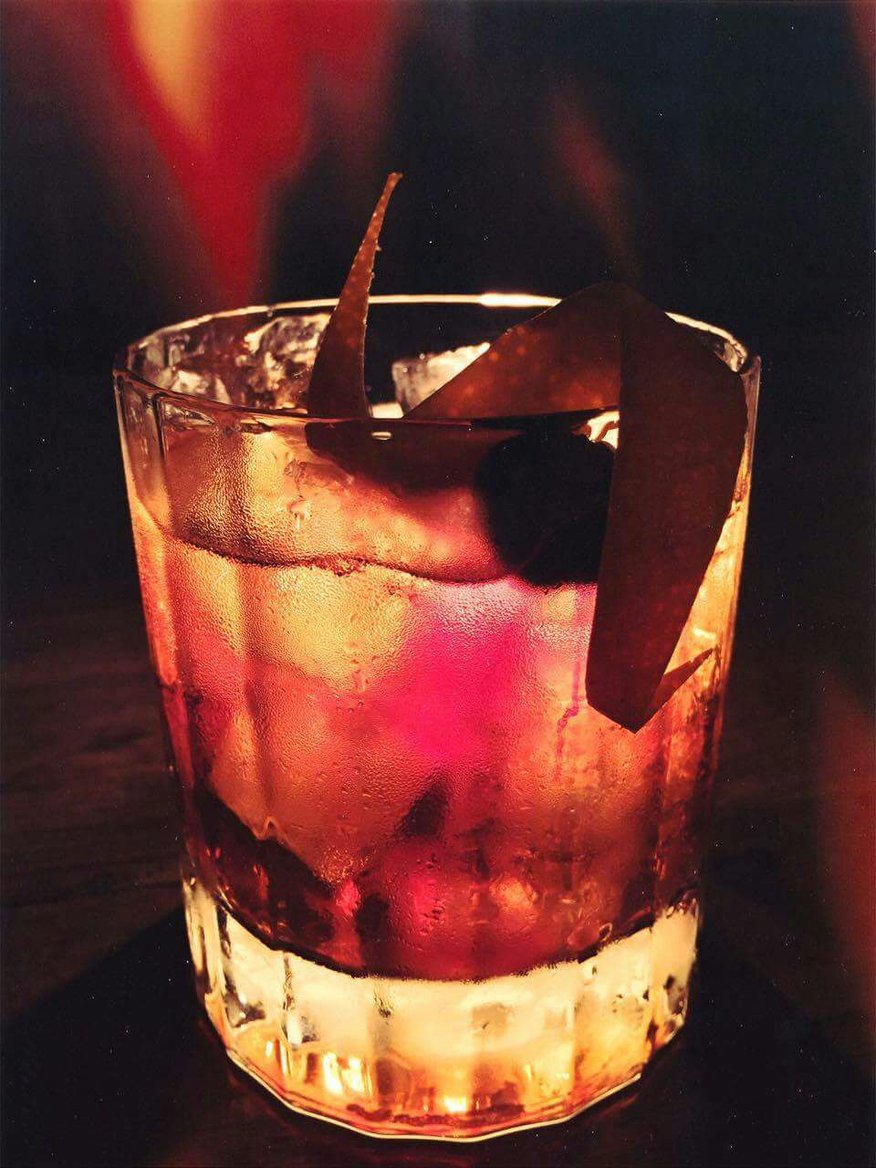 Garnish with a strip of orange.