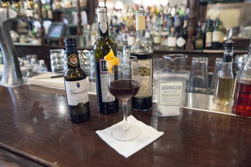 With what:As an intro, the Fino serves as a great apertif, the saline qualities prompting appetite. I will often pair this with our Ataula Montadito, a tapa with house cured salmon, truffle honey, and yogurt marscapone, spread thin on our fresh daily baked Coca bread. As a mid, the Madeira brings a light sweetness to refresh the pallet, with the Ango and salt that balance the sugar out, readying you for whats up next. We serve a smaller, Catalan style fideo dish with squid ink, calamari, and harrisa aioli that is such a great contrast for this cocktail. The simplicity of the drink cuts through the richness of the dish, but the complexity of the sherry holds up to the bold flavors. For a final touch, the PX acts as digestif with a soft, coating mouth feel that pairs so nicely with a robust cheese, like Cabrales or Valdeón,or fresh berries and toasted nuts, like those that top our Mel y Mato, a simple ricotta dessert that we offer as well.
