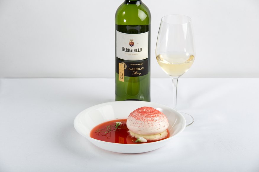 The coastal humidity and winds help the flor flourish especially in Sanlúcar - this protects the wine from oxidation and allows sealed maturation to preserve freshness and life. When later sweetened with grape must, the almond extract like qualities are released alongside orchard fruits, baked apple, pear, touches of fennel and sweet cream. This wine, though sweet, is also bright and reminiscent of an Aperitif. We felt it important to end the meal on a high note, as the end of dinner does not always signify the end of an evening. This pairing serves as a transition between a delicious meal and the evening beyond.