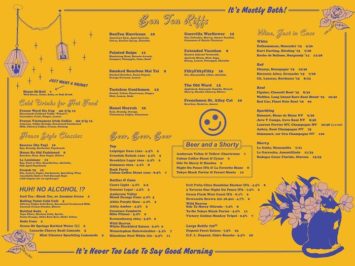 A Cajun-style eatery, Bon Ton, serves an assortment of New Orleans-style dishes, including crab, fried fish and seafood boils. If you're thirsty, there's an inventive list of original cocktails, NOLA classics, beer, traditional wine, and Sherry.