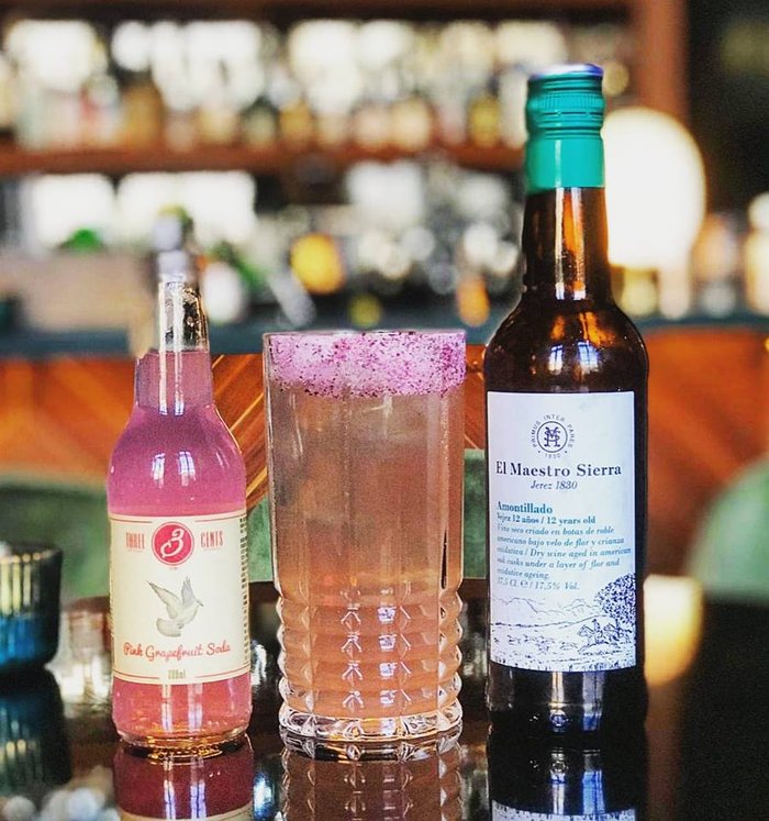 Tasting is believing! this Low-abv, refreshing and simple-to-recreate drink has got it all! Consisting of lime juice, Three Cents Grapefruit soda, Amontillado sherry and a rim of Hawaiian pink sea salt it is most certain to surprise and elevate your evening.