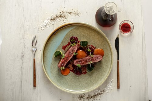 Magret de pato con mojo picón de chile chipotles ahumados y Vinagre al PX