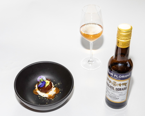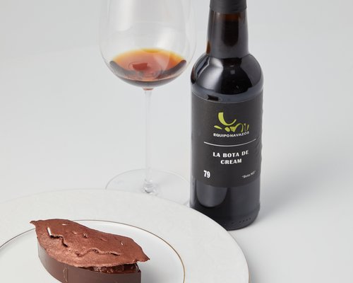 Para finalizar su propuesta, nos sorprenden con una fermentación compuesta de Cacao, “alimento de los dioses”, Avellanas y Aabas tonkas, acompañada de la Bota de Cream 79 “Bota No” del Equipo Navazos, que endulza y equilibra el amargor del cacao.