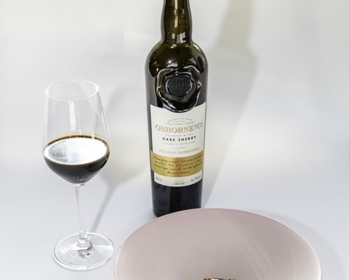 El plato principal: Uvas saladas maridadas con Amontillado de Bodegas Gutierrez Colosía.