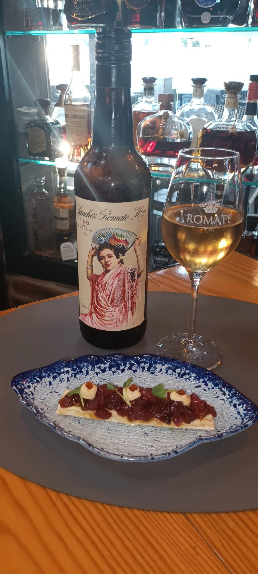 Regañá de tartar de atún rojo de almadraba con salsa emulsión de kabayaki, esferificación de soja