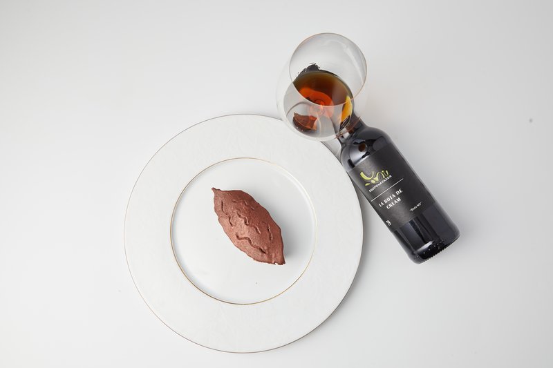- Para finalizar su propuesta, nos sorprenden con una fermentación compuesta de Cacao, “alimento de los dioses”, Avellanas y Aabas tonkas, acompañada de la Bota de Cream 79 “Bota No” del Equipo Navazos, que endulza y equilibra el amargor del cacao.