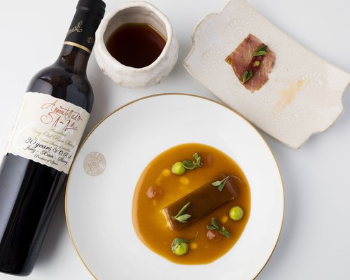 Este vino, de exquista complejidad, es capaz de triunfar en múltiples terrenos, aportando su toque personal a una gran variedad de platos- ahumados, quesos curados, carnes blancas, pescado azul, platos especiados.