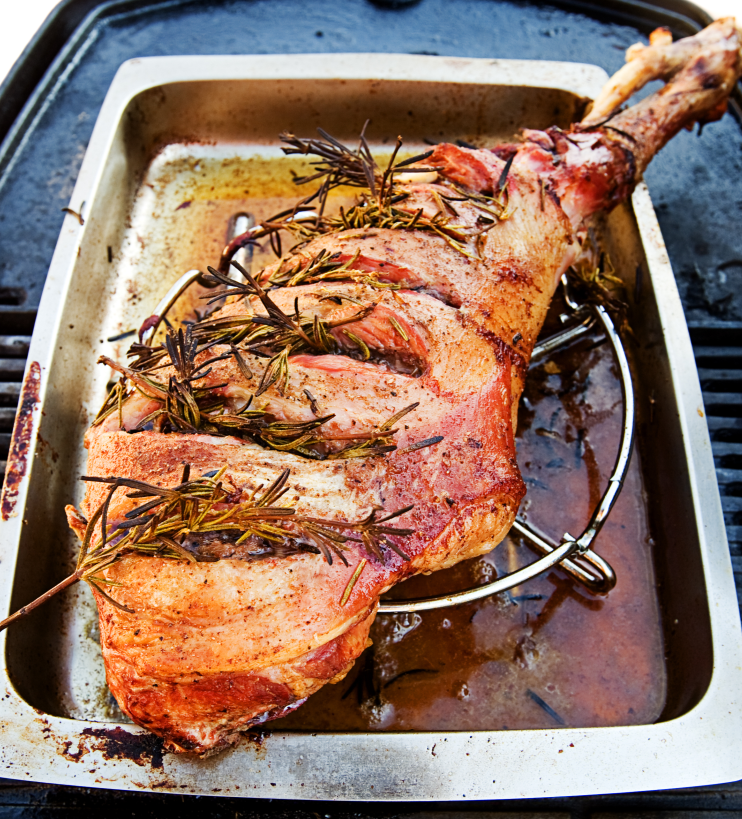 La carne de cordero es importante que no se seque demasiado, por lo que cuando queden unos 20 minutos para la hora rociamos la copa de brandy por encima de la carne para hidratar y dar sabor. Si viéramos que se ha secado mucho podemos echarle un poquito más de brandy o un poco de agua templada, y si se pudiera, el mismo jugo que suelta la carne.