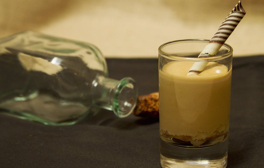 Delicia de crema de orujo con nueces de macadamia con maridaje de Pedro Ximénez: cuando tomamos la crema de orujo nos recuerda al sabor del toffee. Sin embargo, una vez que combinamos con el Pedro Ximénez, aparece un sabor inesperado y explosivo a turrón.