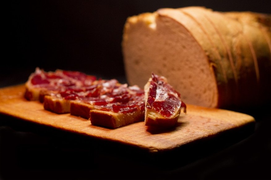Maza de jamón ibérico de bellota maridado con Cream: la maza es la parte que mayor cantidad de grasa infiltrada tiene y también la más rica y jugosa. Su magro se percibe más sonrosado y brillante que en el resto de la pieza debido a la fluidez y cantidad de tocino entreverado. Su grado de salazón es menor debido a la abundancia de grasa entreverada por lo que sus lascas ofrecen exquisitos matices dulces. El cream es un vino perfecto para la maza de jamón ibérico de bellota ya que combina bien con el sabor dulce de la grasa.