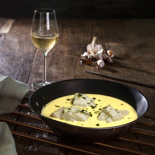 Esta receta tradicional es une fabulosa manera de combinar el sabor de pescados y mariscos nobles como las gambas o las cigalas, con la de otros ingredientes más modestos como el rape, el congrio y los mejillones. La delicadeza de la Manzanilla respetará los matices de cada producto mientras potencia el carácter salino del plato. Una delicia para los amantes de los frutos del mar.