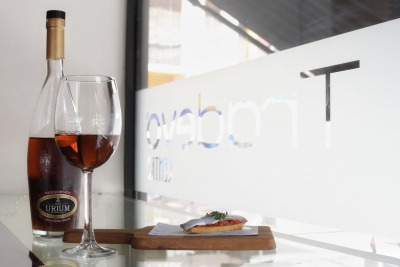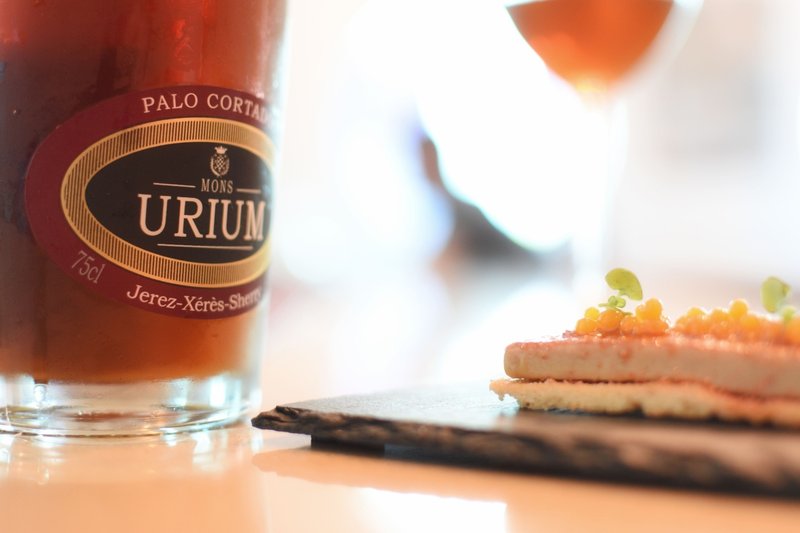 Los vinos DO de Jerez, tienen un lugar privilegiado, como el palo cortado de Bodegas Urium, que parece tocarle las palmas a la Sardina marinada Tradevo, con tosta de pan de tomate y pimientos asados.