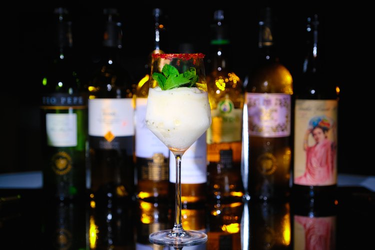 La primera propuesta lleva 5 gramos de pasta de chile chipotle ahumado, 5 gramos de hierbabuena, 30 ml de amontillado, 100 ml de soda, 1cs de zumo de lima y 6cs de hielo pile.