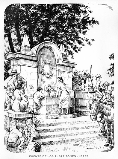 Dibujos Mamelón, fuente de los Albarizones, Jerez (s/f años 50). Colección particular.