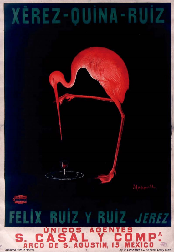 En torno a esta industria gráfica durante varias generaciones se formó un plantel de dibujantes que, sin constituir un grupo conscientemente homogéneo, pueden ser identificados por unas pautas comunes en cuanto a origen, intereses y formas creativas. En un primer periodo encontramos etiquetas y especialmente publicidad realizada por artistas de renombre internacional, como es el caso del italiano Leonetto Cappiello (1875-1942), conocido como el padre de la publicidad, [08] seguidor de Chéret, es el autor de carteles de las marcas europeas más diversas. Es el caso también del cartel del «Don» de Sandeman, del escocés George Massiot Brown (1881-?), [09] por el que al autor cobró por la cesión de derechos 50 guineas (Halley, 2005, p. 196). Autores españoles como Francisco Hohenleiter (1889-1968) —imagen de las bodegas José de Soto—; Nicolás Soro (1875-1943) —azulejo del león para Domecq—; Carlos González Ragel (1899-1969), con su «esqueletomaquia» en el azulejo de Los Gabrieles de Madrid; Carlos Ruano Llopis (1878-1950) con su cartel del «maletilla» para Domecq; José Luis Torres Fernández (1901-1966), dibujante de etiquetas, rótulos y anuncios; o el destacado grabador Teodoro Miciano Becerra (1903-1974), con una gran obra cartelística, [10] que realizó ilustraciones para la Nueva Litografía Jerezana y fue profesor en la Escuela de Artes y Oficios, y que posteriormente se traslada a Madrid. Es necesario destacar autores como Luis Pérez Solero (1892-1968), autor de la figura del Tío Pepe y de campañas famosas para González Byass, Manolo Prieto (1912-1991), que trabaja en Madrid y realiza el famoso Toro de Osborne; Francisco Mariscal Serrano (1925-1995), autor de interesantes carteles; o el pintor, fotógrafo y cartelista José Ramón Fernández Lira (1935-2010).