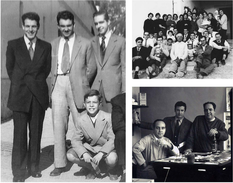 Derecha inferior. Manuel Valle, Juan Herrador y Manuel Rodríguez, en el estudio (s/f, años 50). Archivo familia Manuel Valle
