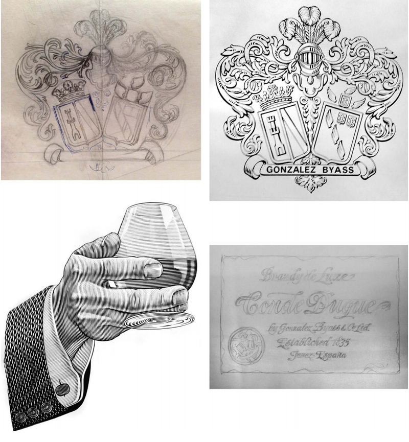 Esta aproximación a los dibujantes y grafistas jerezanos parte de varias conversaciones con Manuel García Díaz, diseñador natural de Jerez, compañero de profesión, gran maestro en la creación de etiquetas de vinos y licores y mejor persona. Manolo había aprendido su oficio en una empresa peculiar, al menos para mí, una especie de agencia a lo «Mad Men» jerezana,[1] dedicada a la creación gráfica entre los años cincuenta y los noventa del pasado siglo. Dado que la economía de Jerez de la Frontera ha girado en torno al vino, sus derivados y su industria auxiliar, es fácil imaginar que la principal clientela de esta agencia y de estos creativos fueron las bodegas jerezanas y su entorno.