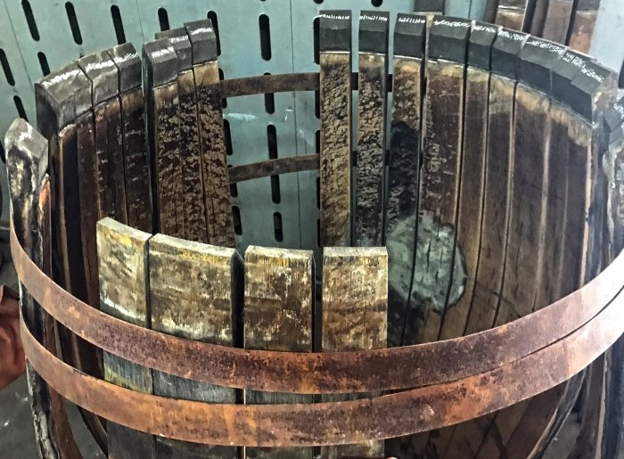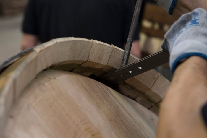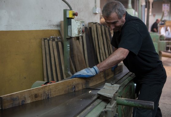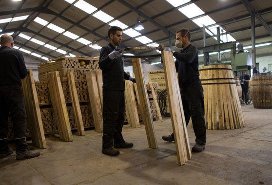 Una vez transcurrido el periodo de secado natural y comprobada la humedad exacta de la madera, se desmontan las pilas de duelas para el dimensionado exacto de las piezas que conformarán cada bota, así como para darles la forma perfecta para su ensamblaje. Es el momento de seleccionar y apartar posibles duelas que presenten defectos tras el secado. Utilizando maquinaria específica, los “doladores” preparan los listones de madera, canteándolos, cepillándolos y dándoles la característica forma de las duelas, con los extremos más estrechos que el centro.