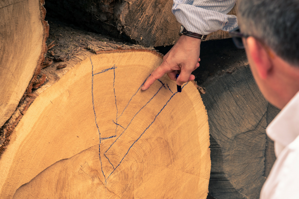 La primera fase en el largo proceso para hacer una sherry cask consiste en el corte longitudinal de los listones de madera que posteriormente constituirán las duelas de la bota. El corte debe hacerse siguiendo la propia estructura interna de crecimiento del árbol, para garantizar la estanquidad.
