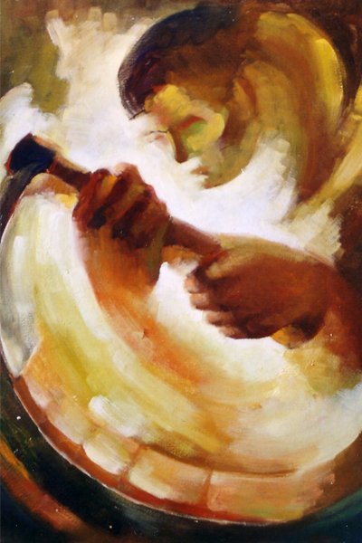 Francisco Pinto Berraquero (1924 – 2004) fue un escultor y pintor especialmente interesado en los oficios y labores tradicionales y dedicó una buena parte de su obra al mundo de la bodega, de la viña y también de la tonelería. La Fundación Francisco Pinto Berraquero www.fundacionfranciscopintoberraquero.com, organizadora de la exposición, ha sido tan amable de permitir la reproducción en algunas de esta obras en esta página, en las que queda patente la sensibilidad del artista para encontrar la belleza en este oficio y en las distintas faenas que requiere la construcción de una bota.