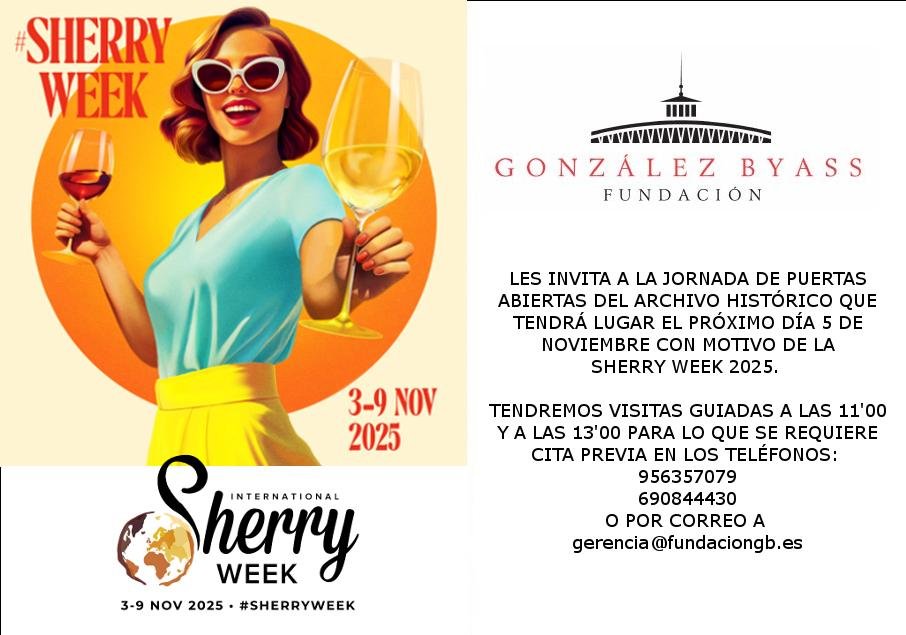 La Fundación González Byass organiza una jornada de puertas abiertas con dos visitas guiadas a las instalaciones del Archivo Histórico a las 11'00 y a las 13'00 de una hora de duración. En las mismas se hará un recorrido por la historia del vino de Jerez, en general, y por la historia de González Byass, en particular.
