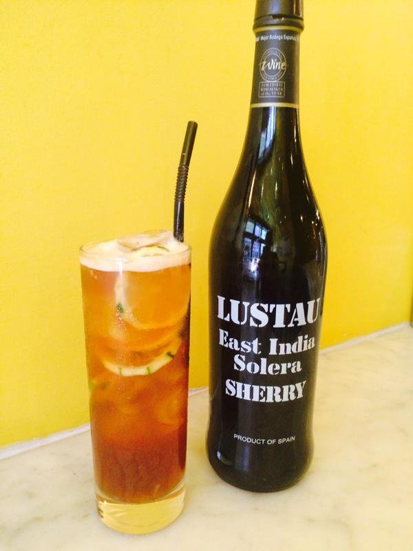 4/5 fresh lime wedges. Put the lime wedges into the cocktail shaker, then add the sugar and muddle ( squish everything together ) to release the lime juice. Then add 100ml of Lustau East India sherry with lots of ice and shake shake shake!. Pour this mix into a long cocktail glass then top it up with ginger beer and stir!!!!