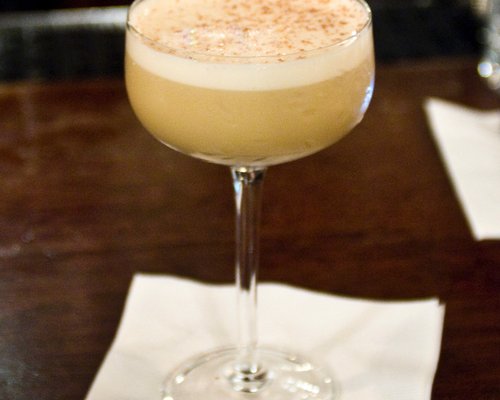 Since this cocktail is intended with the first course, I love pairing it with coriander dusted seared Ahi tuna with corn custard and jalapeno jam. The fatty richness of the tuna and the corn custard pair well with Oloroso Sherry, and the jalapeno jam accentuates the spice in the sherry. The bitter notes from Luxardo Bitter and the Rhubarb bitters help digest the dish and stimulate your appetite for something more.