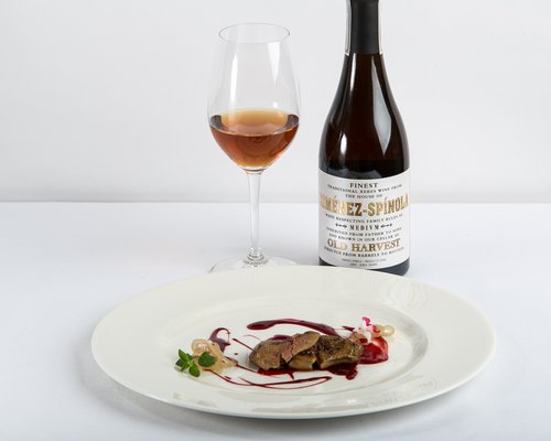 The philosophy behind this pairing with Oloroso Antique Fernando de Castilla is a combination of two factors; the Sweetbread which has an amazing texture and is very creamy, adds sweetness and richness to the Veal finding the perfect balance with the Oloroso. In addition the wild Mushrooms and the reduced Oloroso sauce bring caramlised notes which together with the heartiness of the walnut and the truffle matches exactly the bouquet of the hearthy and masculine 20 years old Sherry.