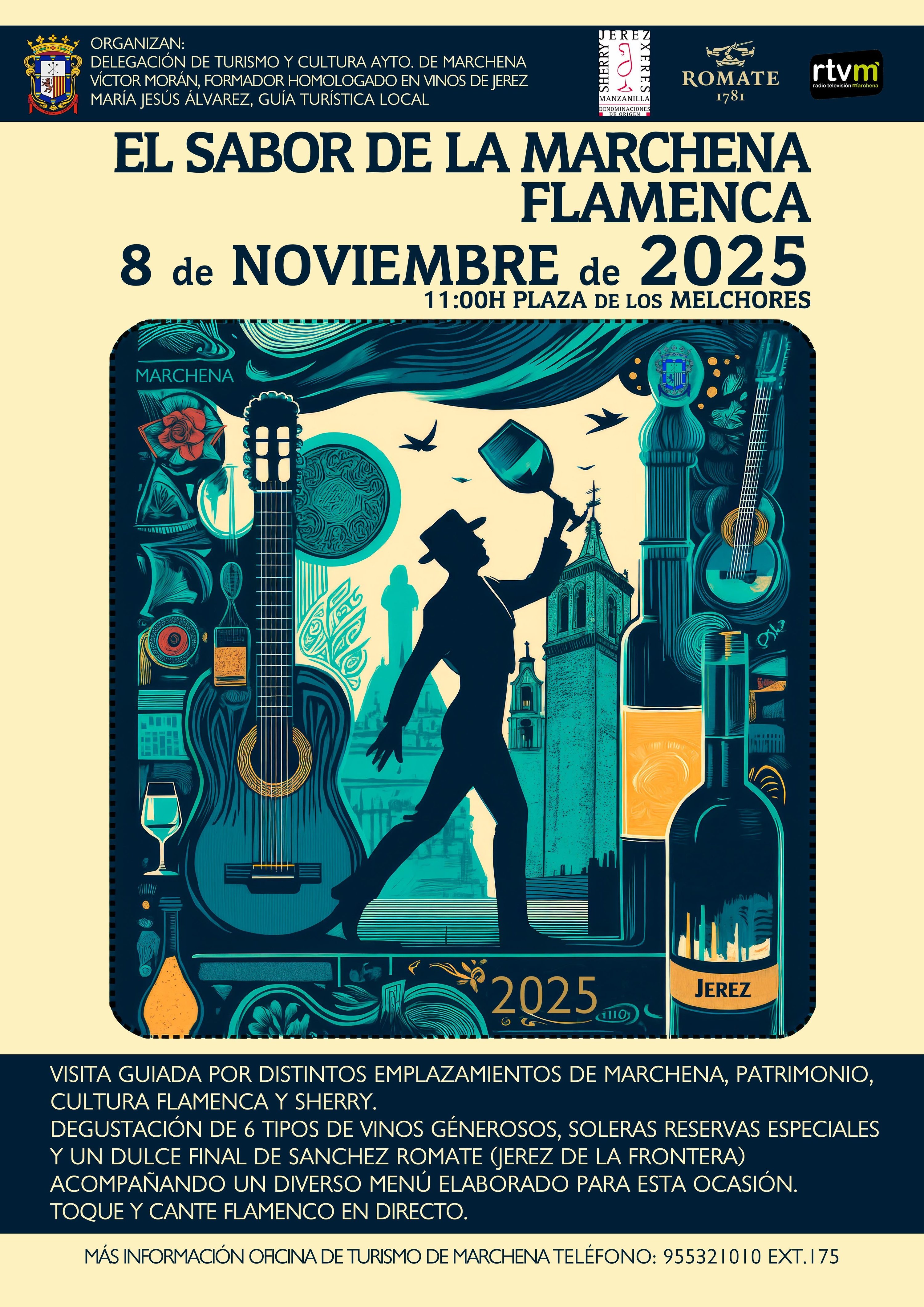Visita guiada por distintos emplazamientos de Marchena, con patrimonio, cultura flamenca y sherry.