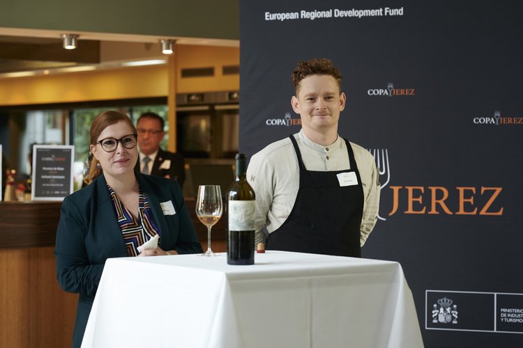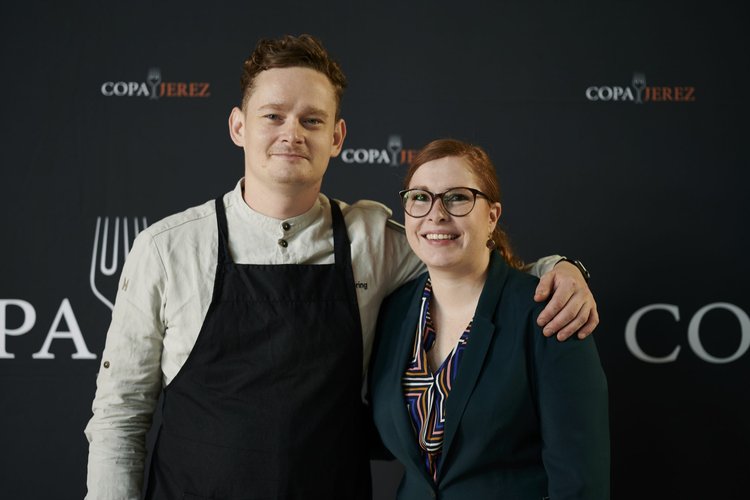 Hamburg, August 23, 2021 - Sous chef Patryk Döring and sommelier Maria Rehermann from Restaurant Brikz Berlin are the clear winners of the Copa Jerez Germany finals 2021. A six-person, high-caliber jury decided in the competition among the chef-sommelier teams who selected their own sherry choice pairing with a three-course menu. New aspects were in demand for the use of sherry as a corresponding drink in the glass and a refined seasoning on the plate. Peer F. Holm, president of the jury, sums up the experts' judgment succinctly: “As the jury, we were enthusiastic about the complexity of the creations on the plate as well as the combinations with the different sherry styles. Almost the entire range of sherry variations was used and served harmoniously with the dishes. It was especially the aging of sherry and the aromas that develop in interaction with the flor yeast and the wooden barrel that had to be balanced to match the menu ”.