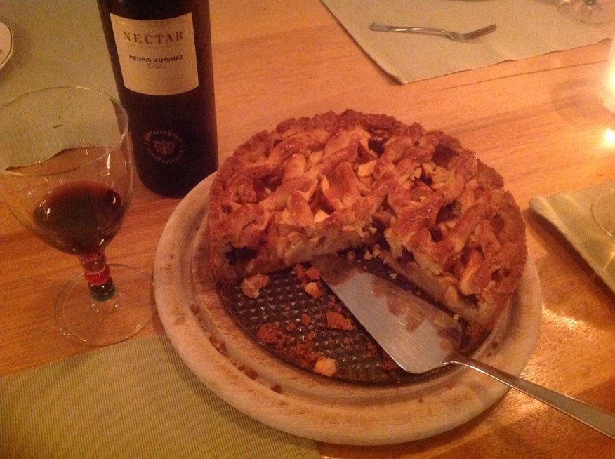 Zelf gebakken appeltaart met noten, abrikozen natuurlijk appeltjes! En daarbij een heerlijke Nectar Pedro Ximenez!