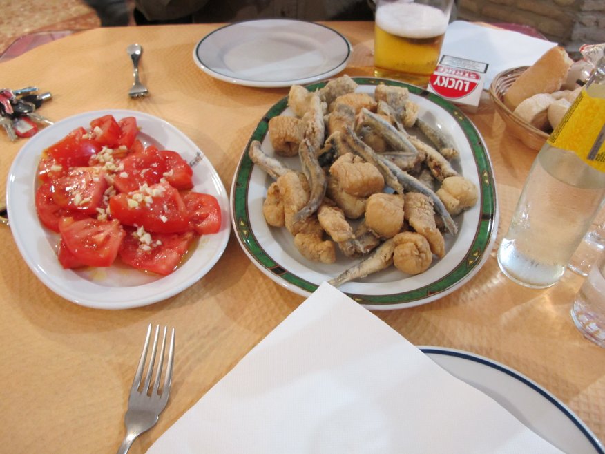 Zorg dat de stukjes voldoende ruimte hebben en niet aan elkaar gaan kleven. Wacht tot de stukjes goudbruin kleuren, laat ze uitlekken en bestrooi met zout. Serveer met een schijfje citroen en salsa tartara (Spaanse variant van de tartaarsaus)