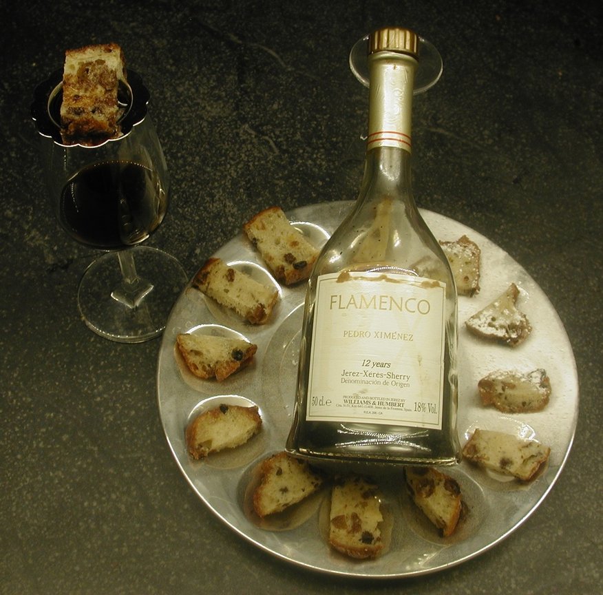 Een in Pedro Ximenez ( met een rijke, zoete rozijnen smaak ) gedrenkt plakje oudhollandse Oliebol. Met deze sherry-shapas combinatie won Miranda Versace - Hartman de 'Sherry your Tapa' winactie.