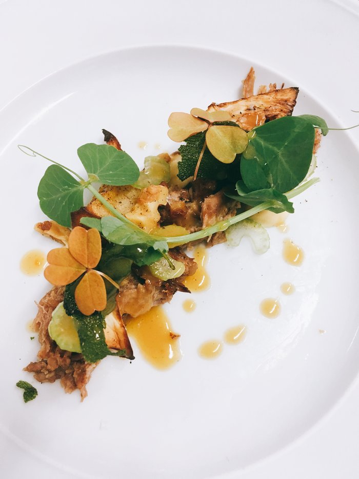 Duck Confit - Toasted Celeriac - Pear - Pickled Onion - Walnuts - OrangeSauce. . Paired with Mons Uriums Palo Cortado Classic.