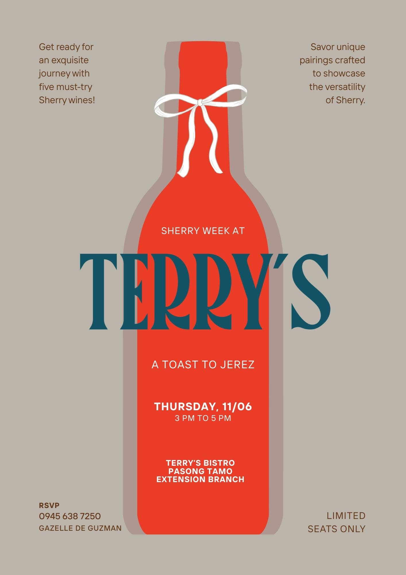 Discover Sherry with us and enjoy some delicious pintxos to pair. PHP 1,295 per ticket Terry's Circle Members get 10% off All Sherry is available at 25% off RSVP 0945 638 7250