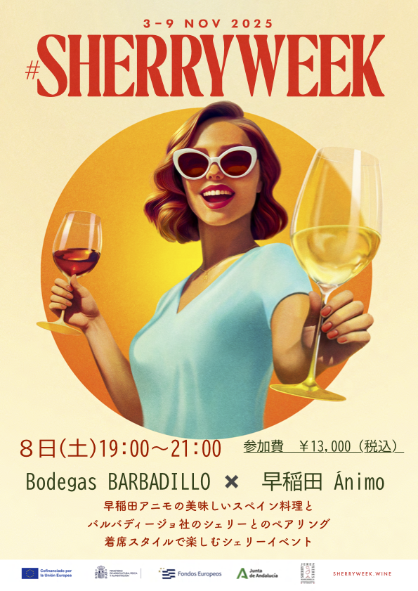 バルバディージョ社のシェリーと早稲田にあるスペイン料理店『Ánimoアニモ』の美味しいお料理をゆっくりと味わえる着席スタイルのペアリング・シェリーイベントです。
