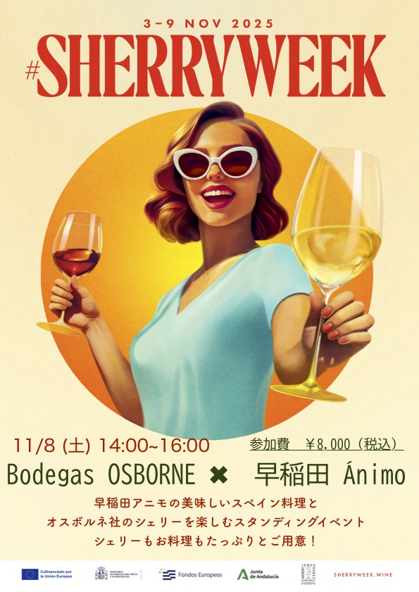 オスボルネ社のシェリーと早稲田にあるスペイン料理店『Ánimoアニモ』の美味しいお料理を楽しめるスタンディングシェリーイベント