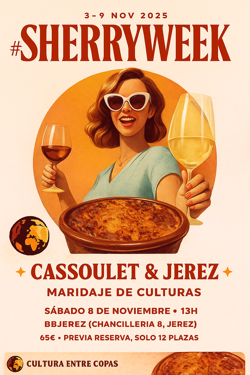El cassoulet, símbolo del suroeste francés, es un guiso de fuego lento y sabores intensos. Los vinos de Jerez, con siglos de historia en Europa y reconocidos por su singularidad, ofrecen el contrapunto perfecto: frescura, complejidad y armonía. Más que un maridaje, es un puente cultural entre Occitania y Andalucía, territorios donde la mezcla de influencias ha forjado identidades únicas.