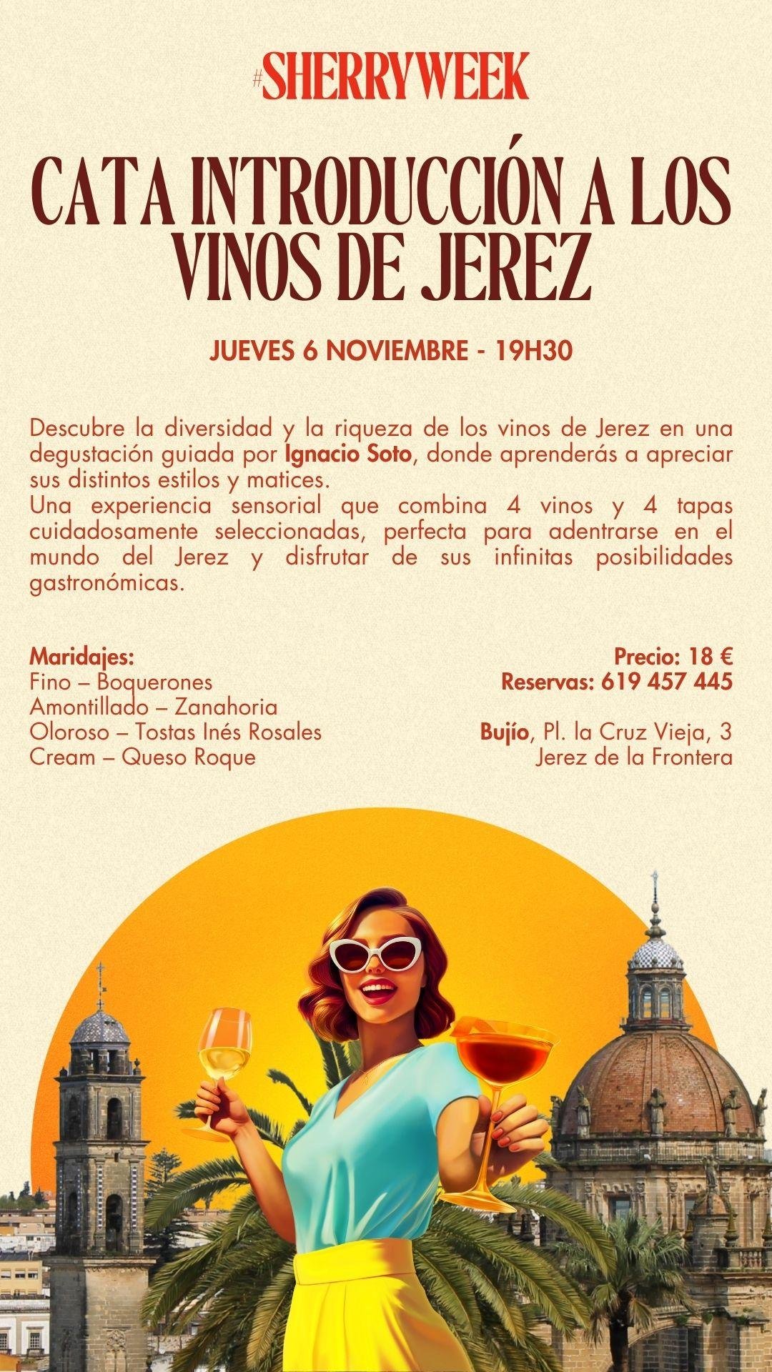 Descubre la diversidad y la riqueza de los vinos de Jerez en una degustación guiada por Ignacio Soto, donde aprenderás a apreciar sus distintos estilos y matices. Una experiencia sensorial que combina 4 vinos y 4 tapas cuidadosamente seleccionadas, perfecta para adentrarse en el mundo del Jerez y disfrutar de sus infinitas posibilidades gastronómicas.
