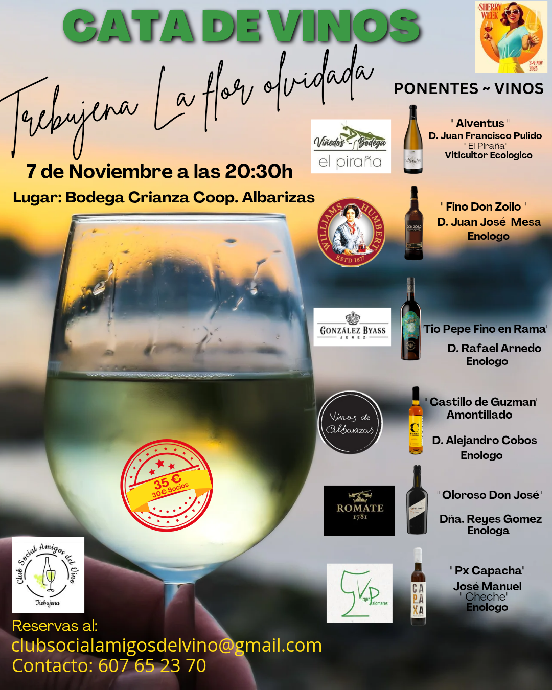 La Asociación Amigos del Vino de Trebujena organiza una cata maridada con 5 conocidos enólogos del Sherry. Contaremos con Alejandro Cobos de Coop.