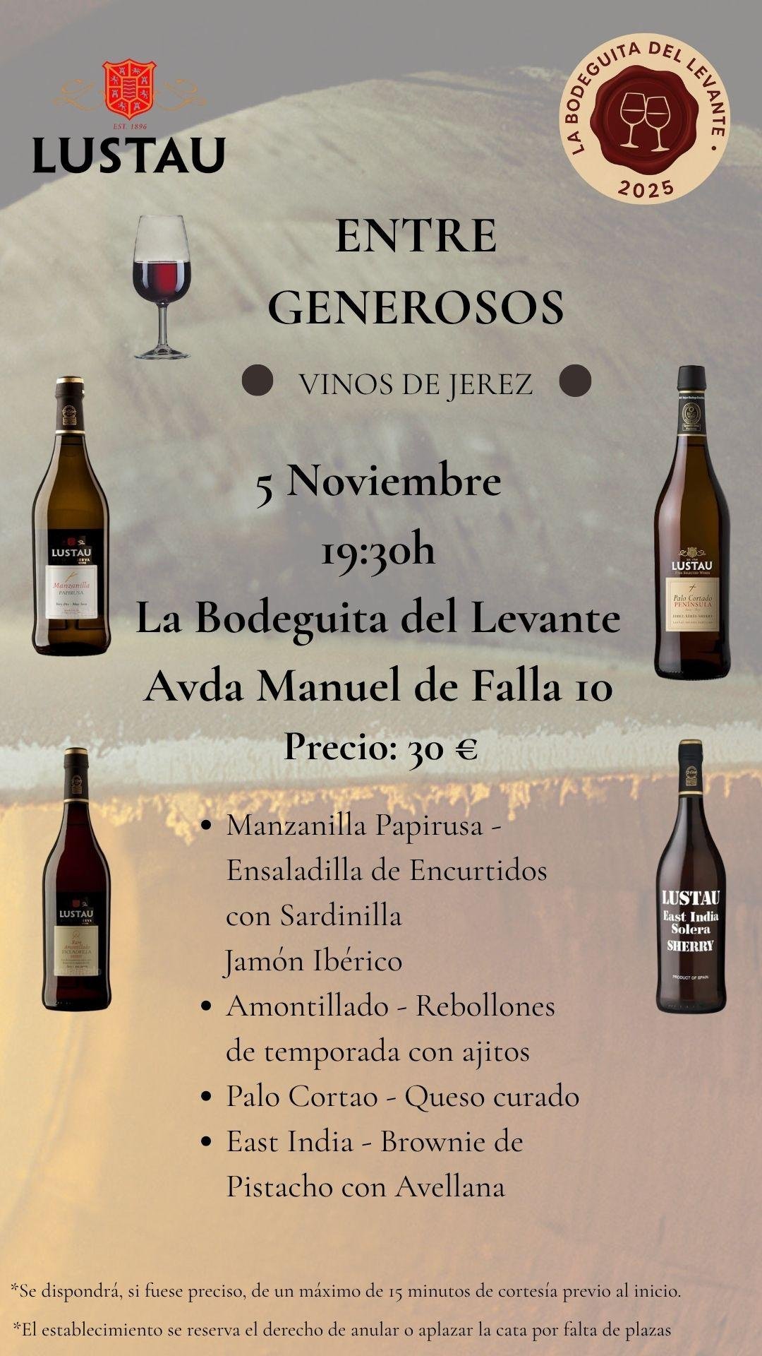 ¿Quieres disfrutar de los mejores Vinos de Jerez? Ven a disfrutarlos con nosotros de la mano de Lustau, una cata que incluirá un maridaje de primera calidad.